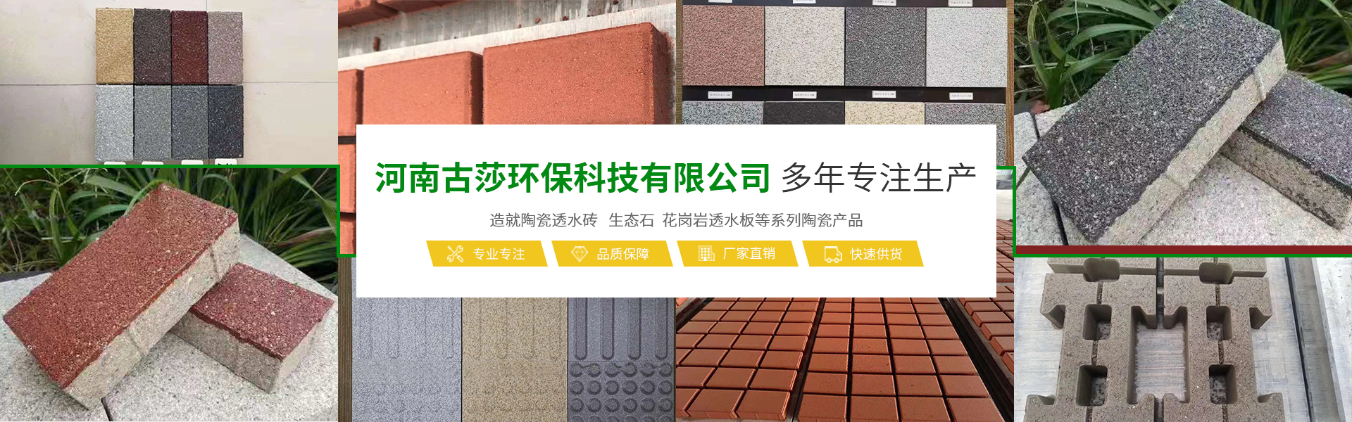 河南古莎環(huán)保科技有限公司總坐落于交通樞紐城市鄭州,是一家具備研發(fā)、生產(chǎn)、銷售能力為一體的綜合性現(xiàn)代化陶瓷企業(yè)。本公司專業(yè)生產(chǎn)經(jīng)營生態(tài)陶瓷透水磚、生態(tài)鋪石、PC仿石材透水磚、PC仿石材景墻磚、普通透水磚、燒結(jié)磚等系列產(chǎn)品,完善的研發(fā)團(tuán)隊,完善的生產(chǎn)流水線設(shè)備,打造完善的陶瓷企業(yè)。古莎環(huán)保科技現(xiàn)代化陶瓷企業(yè)是美化城市,改善生活環(huán)境質(zhì)量的生態(tài)環(huán)保產(chǎn)品,可廣泛應(yīng)用于公共建筑廣場、城市道路、公園、藝術(shù)景觀、廊道、房地產(chǎn)、別墅住宅小區(qū)、地鐵口、車站、高速公路服務(wù)區(qū)等。古莎環(huán)保科技在原有陶瓷企業(yè)基礎(chǔ)上,另拓展園林綠化、市政施工、瀝青包工包料施工、公路維修等業(yè)務(wù)板塊,專業(yè)培訓(xùn)了一些園林綠化、市政施工技術(shù)人員,并有多年的施工養(yǎng)護(hù)經(jīng)驗以及建筑工程經(jīng)驗。保證市政工程施工質(zhì)量以及園林綠化后期養(yǎng)護(hù)規(guī)范化、專業(yè)化。古莎環(huán)保科技所遵循的企業(yè)與品牌發(fā)展思路,是奠定在品質(zhì)與產(chǎn)品應(yīng)用之上。環(huán)保理念由我們共同倡導(dǎo),理性思考,以推進(jìn)步,感性溝通,以共建優(yōu)越。古莎環(huán)??萍寂c大家真誠合作,攜手共進(jìn),為助力海綿城市建設(shè),建筑高品質(zhì)的綠色城市生活貢獻(xiàn)一份力量!